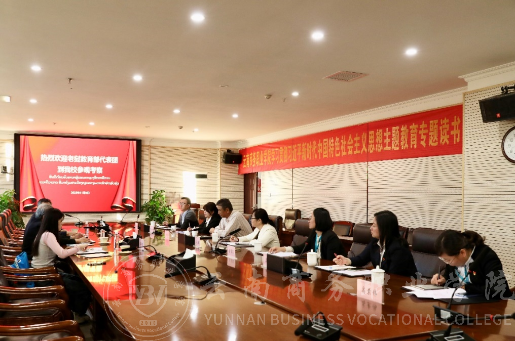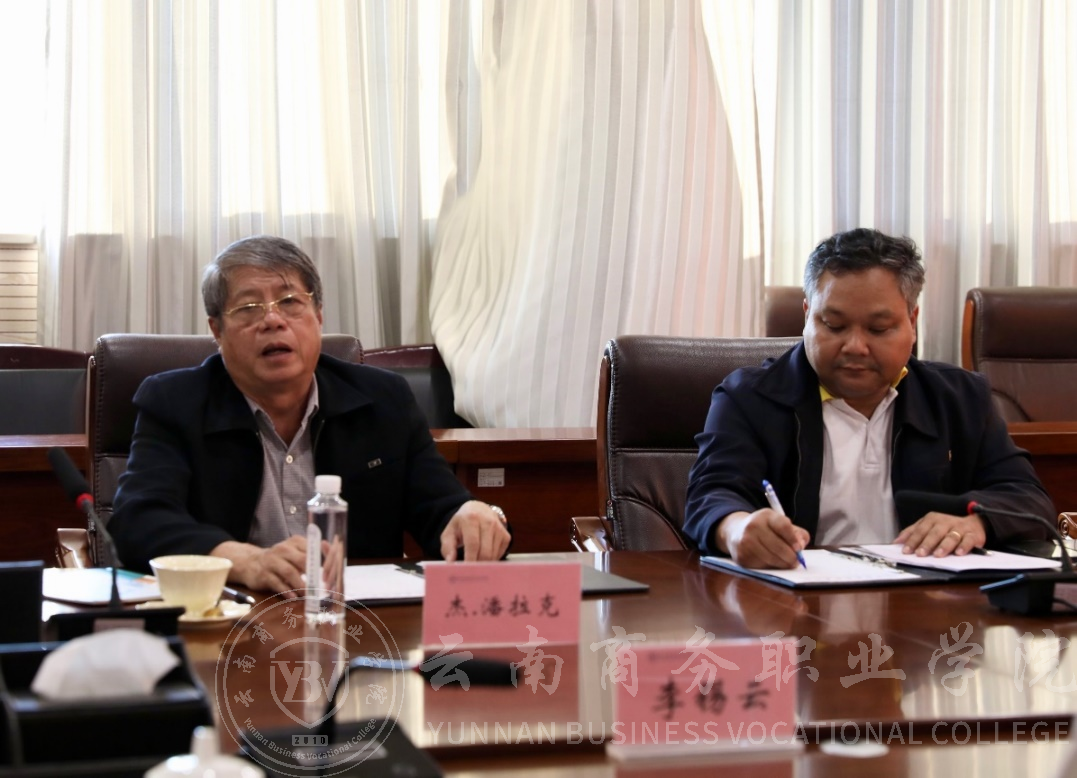李锡云校长对老挝教育部代表团莅临我校表示热烈欢迎,并强调中老两国路邻相邻,两国人民情同手足,希望通过本次访问加深双方情谊,深度探讨合作项目和合作方式,能够将合作落地落实。汪湳副校长对学校办学情况作简要介绍,司长杰.潘拉克先生在认真听取学校办学情况介绍后,表示beat365平台官方网站所设置专业符合老挝人才的需求,学校实训仪器设备完善,实训教学效果良好,具备良好的合作基础,将把学校的办学优势及特色向老挝大学进行广泛宣传,以促进双方师生交流,资源互补,共同推动两国教育事业发展和人才培养质量提高,期待未来能够合作成功。之后,大家在人才培养、师资培训等方面作了更深一步的探讨,为后续各项目的落地奠定了基础。