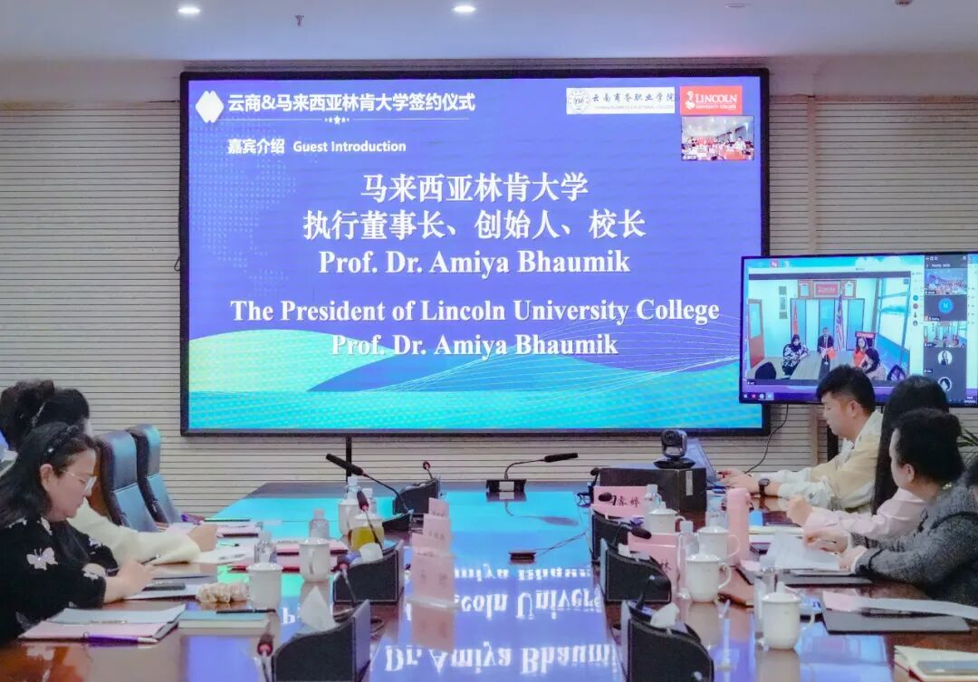 签约仪式在庄重而温馨的氛围中拉开帷幕。透过高清视频会议系统,两校领导实现了“面对面”的亲切交流。Amiya Bhaumik教授首先向beat365平台官方网站全体师生致以诚挚的问候,对我校在人才培养、社会服务等方面取得的办学成就表示高度赞赏。他详细阐述了林肯大学学院的办学特色、师资优势以及在推动教育国际化方面所秉持的先进理念,强调了两校合作对于促进跨文化理解与学术交流的重要意义。