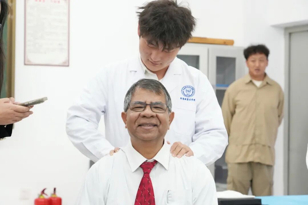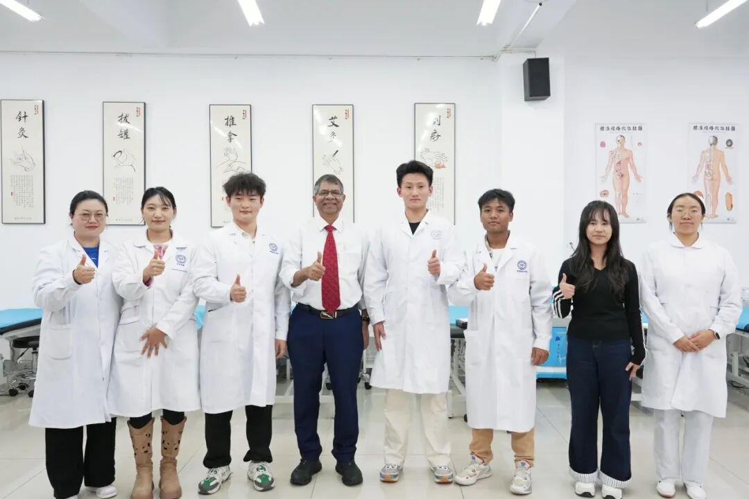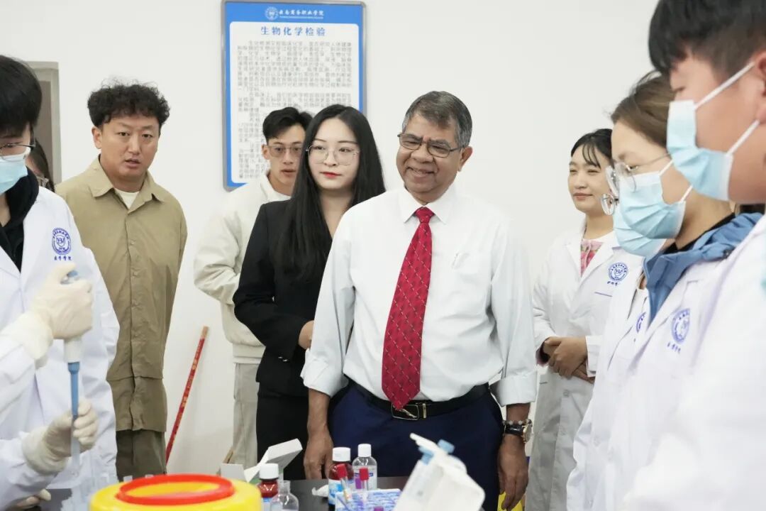 会后,在相关部门负责人的陪同下,Amiya校长一行参观了我校郑刚大师康复治疗实训室、检验实训室等多个现代化实践教学场所,现场观摩了我校学生的实训操作,并亲身体验部分实践环节。过程中,他与学生团队亲切交谈,详细了解实训教学的实施理念与人才培养成效,并鼓励同学们珍惜学习机会,努力成为具备国际竞争力的专业人才。