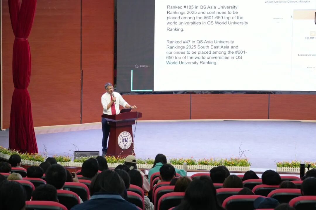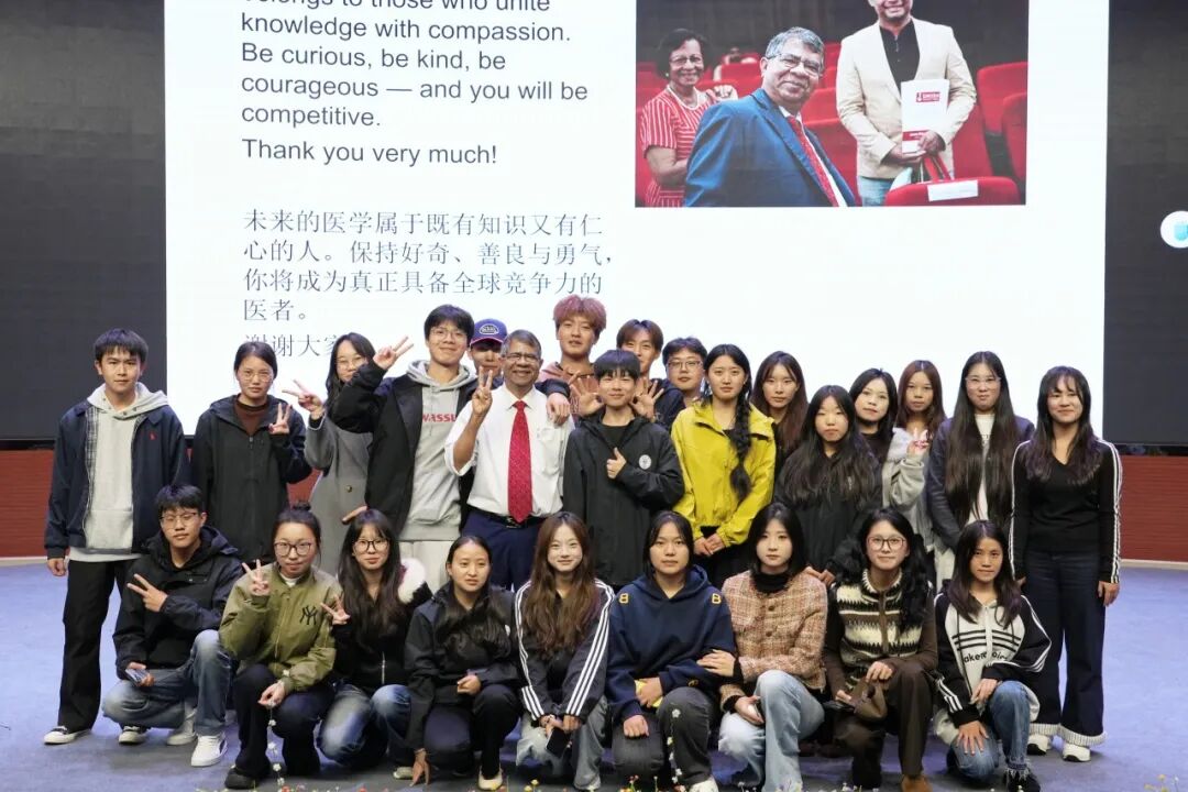 随后,Amiya校长为我校学生带来了一场以“如何成为具有全球竞争力的新一代医学生”为主题的精彩讲座。讲座以“梦想”为切入点,迅速拉近了与学生的距离,引发了广泛共鸣。结合自身多年国际教育管理经验,Amiya校长为学生描绘了一幅清晰的成长路径图。他指出,梦想是一切成就的起点,医学生更是将守护人类健康的个人理想融入职业使命的伟大实践。在全球化不断深入的今天,新一代医学人才不仅需要具备扎实的专业功底和持续学习的能力,还应拥有卓越的跨文化沟通能力、开阔的国际视野以及勇于创新的思维品质。