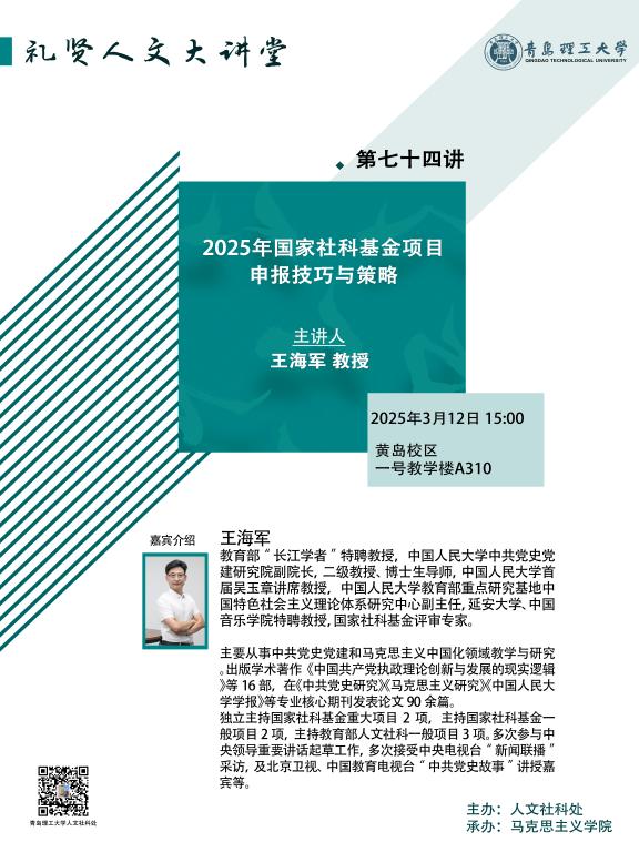 【礼贤人文大讲堂】第七十四讲预告:2025年国家社科基金项目申报技巧与策略