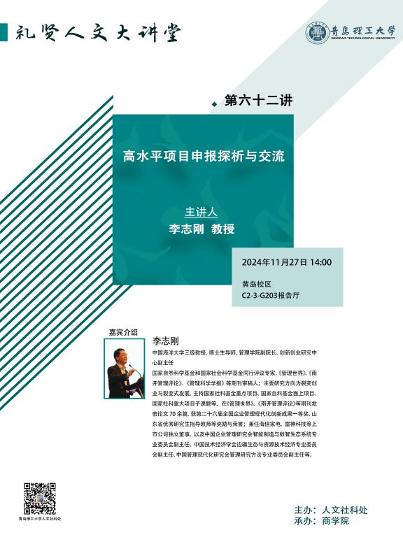 【礼贤人文大讲堂】第六十二讲预告:高水平项目申报探析与交流