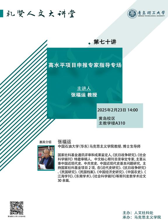【礼贤人文大讲堂】第七十讲预告:高水平项目申报专家指导专场