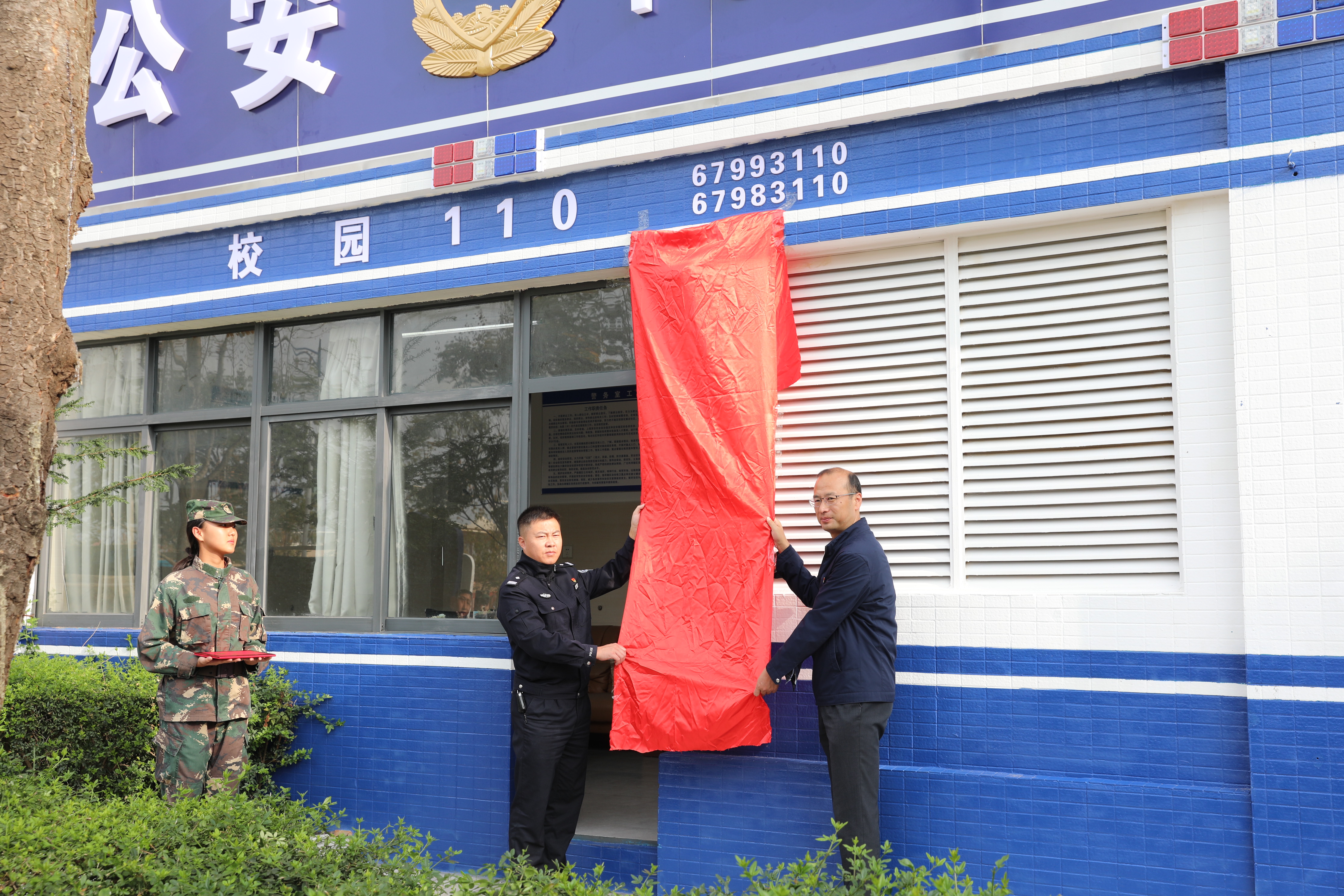 我校党委书记张向英、龙保派出所副所长李晓明上台为“校园110”揭牌,拉开了校园安全管理深入推进和校警共建深入发展的帷幕。