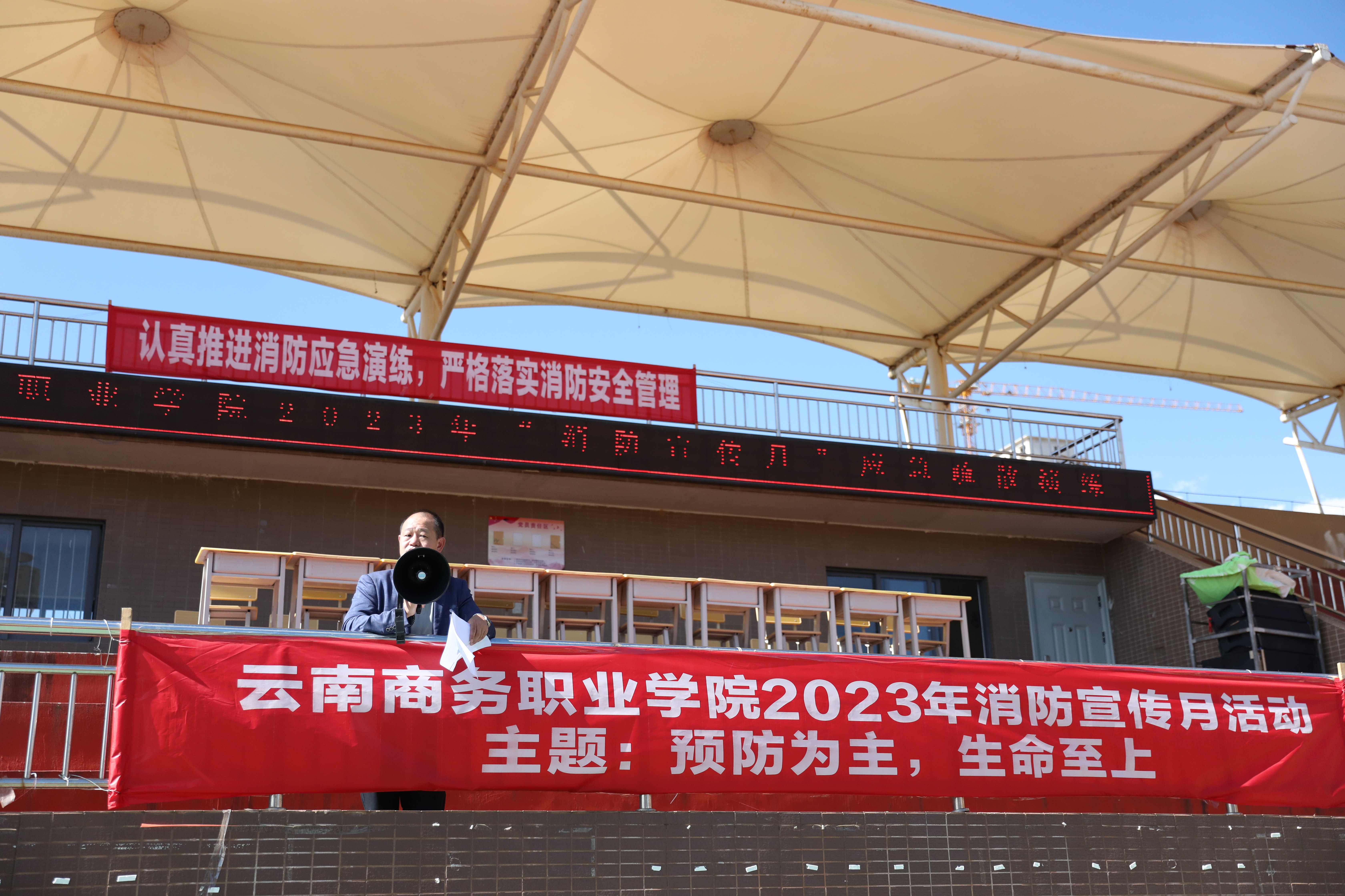 为进一步强化师生消防安全意识,提高师生的自救自护能力及整体安全意识,切实保障全校师生在突发事件来临时的生命安全,结合消防宣传月“预防为主、生命至上”的主题和相关要求,学校于11月14日下午,在学生公寓开展消防应急疏散演练。本次演练活动邀请到嵩明县消防救援大队参谋王兴贵及相关工作人员到校指导,学校主要校领导,各职能部门负责人,二级学院副院长及全校师生10000余人参与演练。