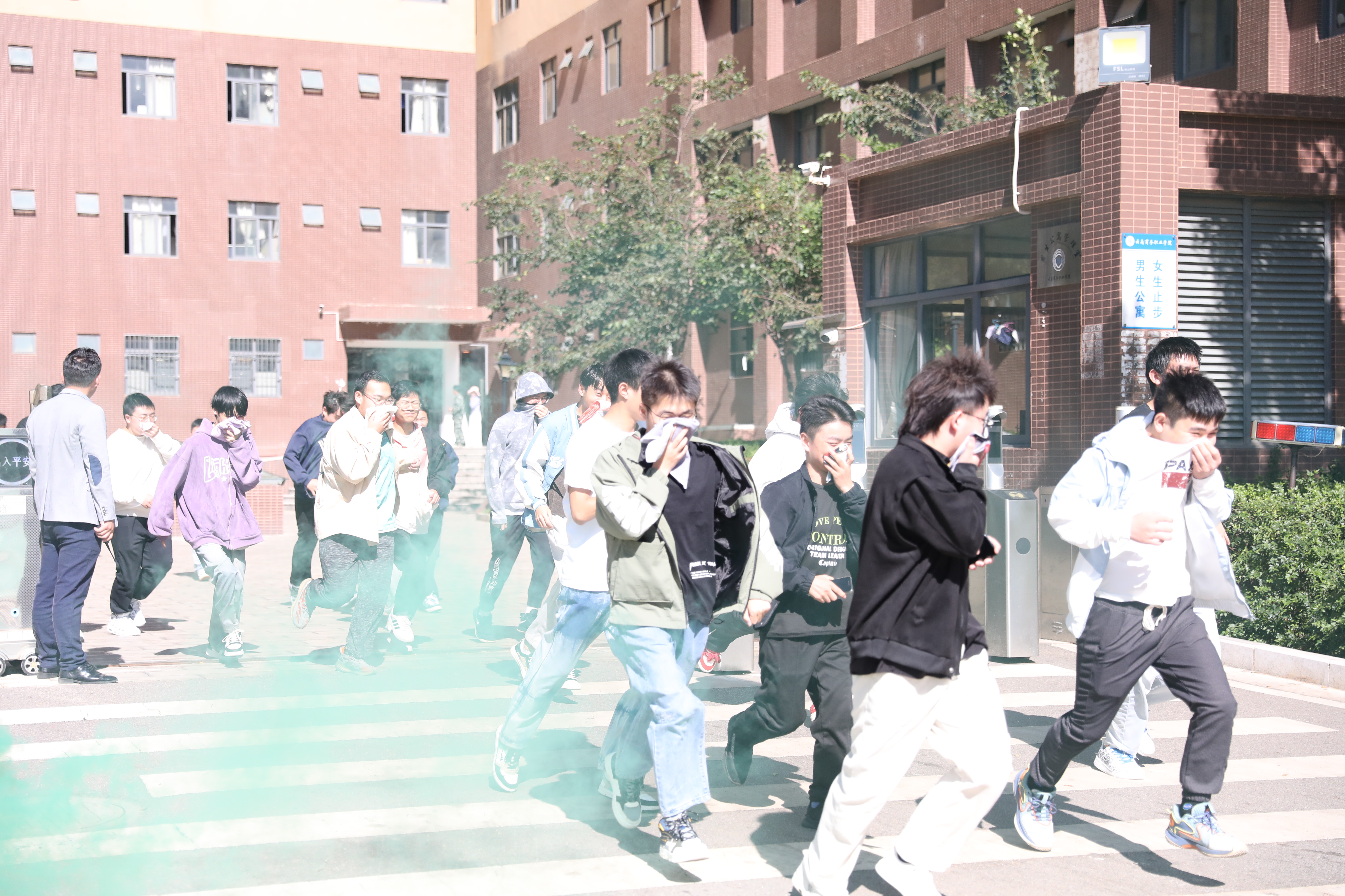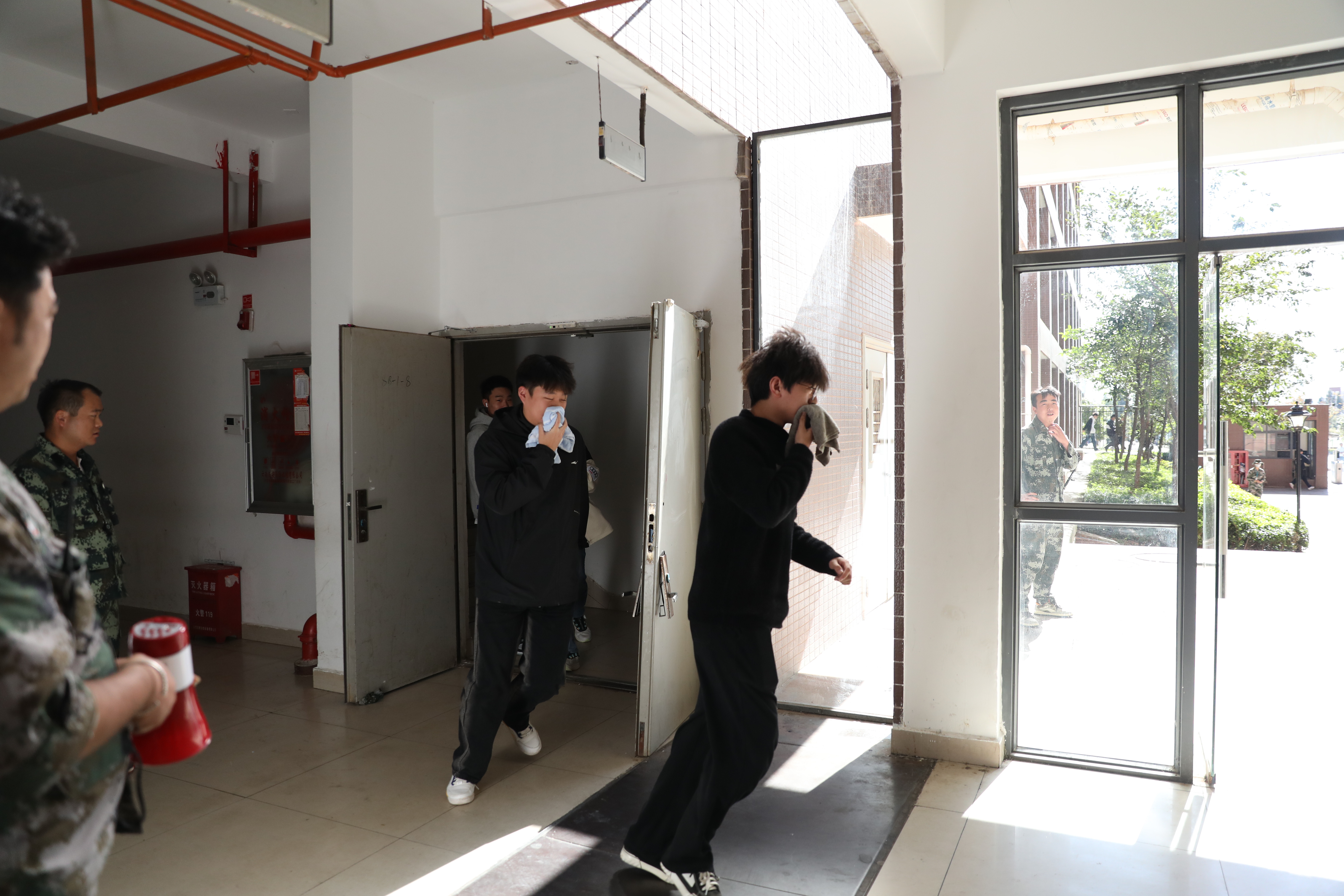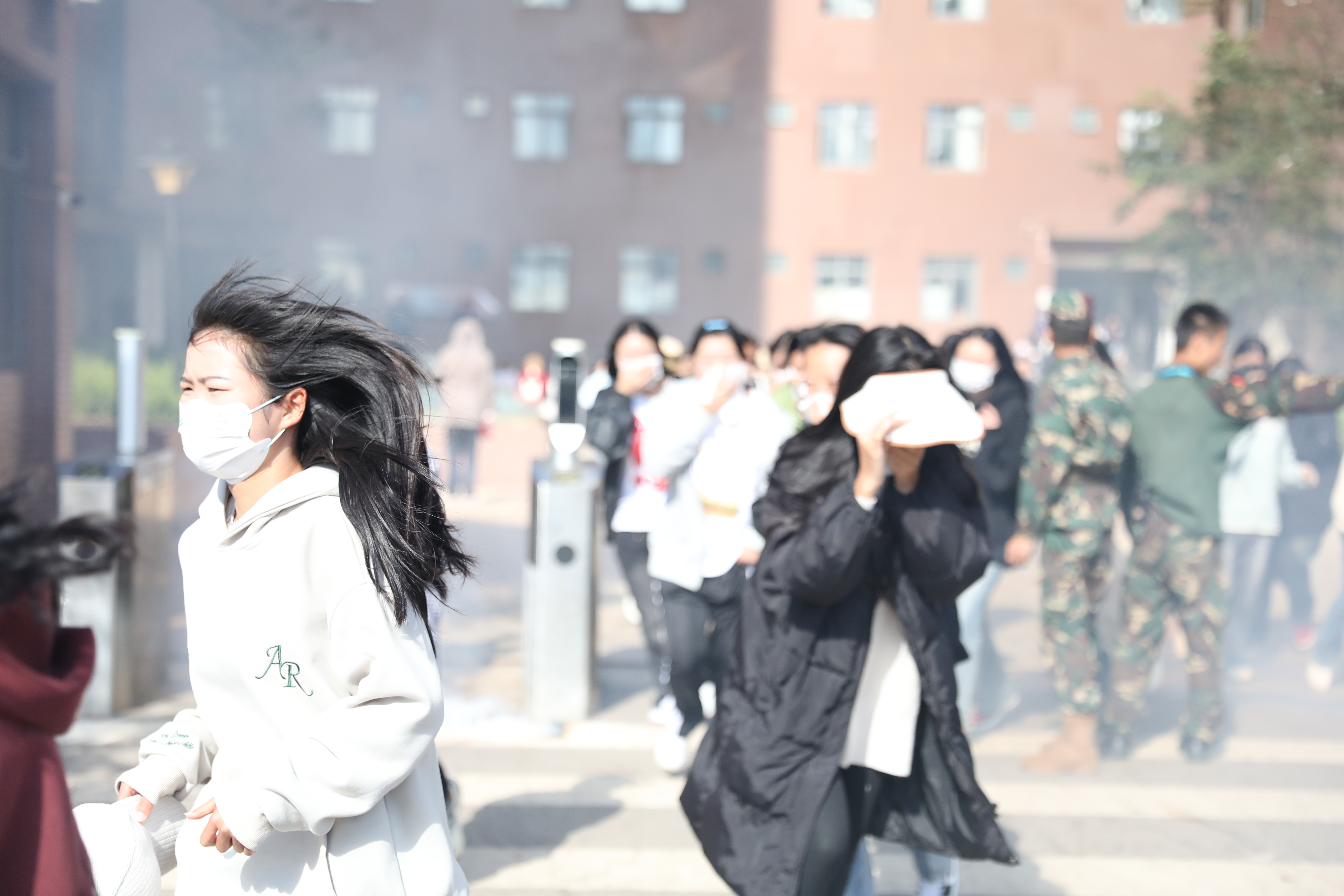 学生从宿舍逃离,用湿毛巾捂住口鼻,身体重心降低,沿着逃离路线有序撤离。
