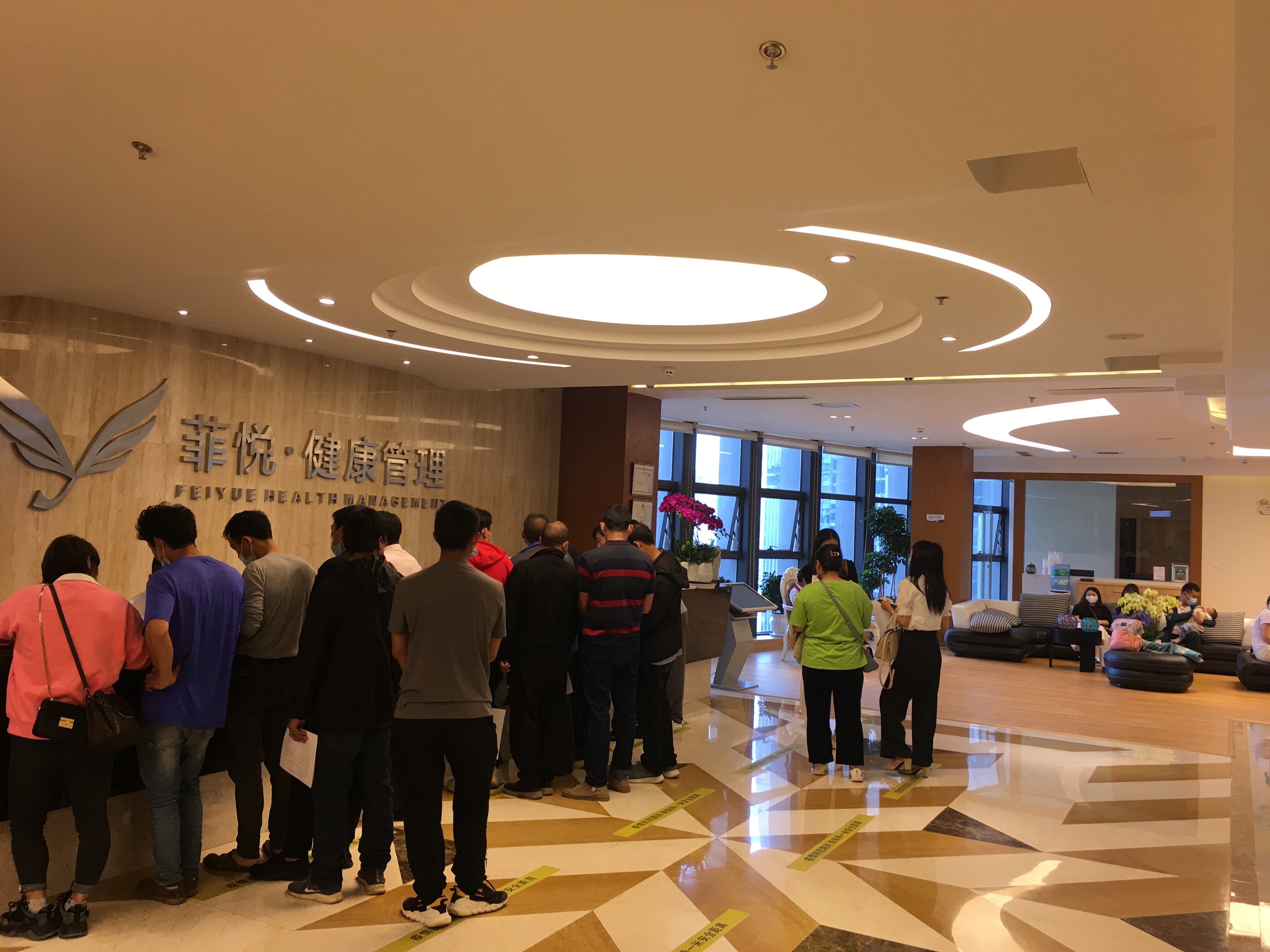 5月28日上午,教职员工陆续到达昆明菲悦健康体检中心,排队到前台领取体检登记表,按照流程进行体检。