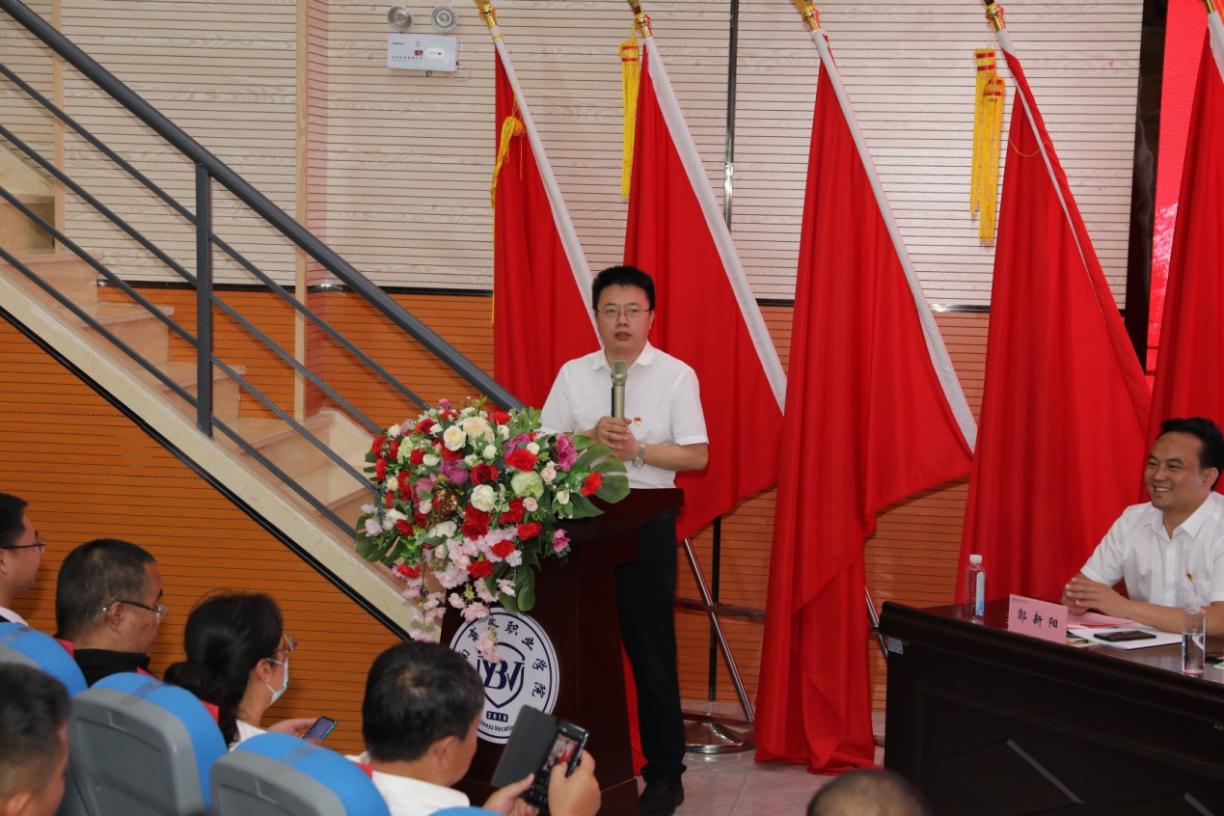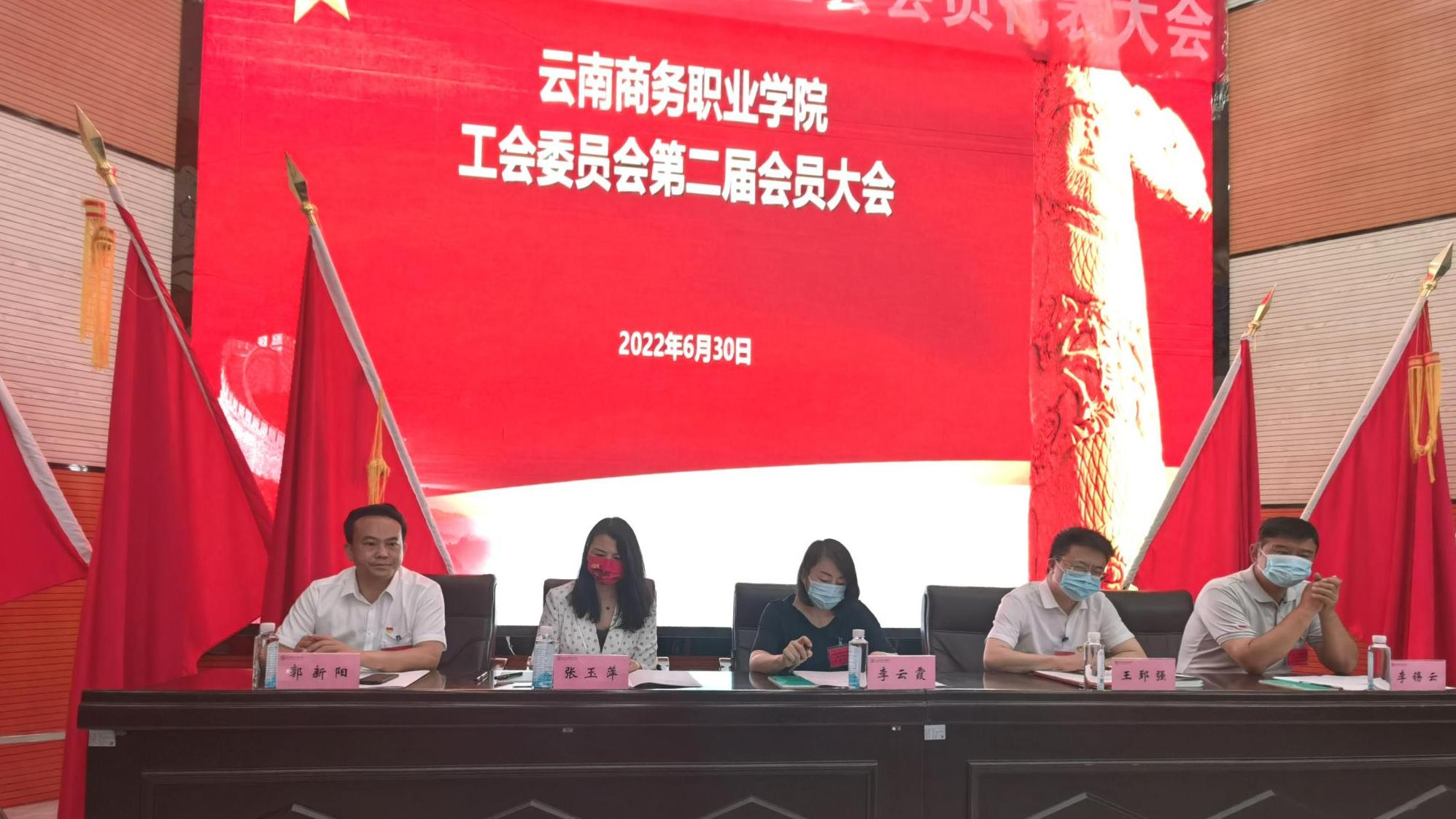6月30日上午,云南商务职业学校第二届工会委员会换届选举大会在二号报告厅举行。嵩明职教新城工会联合会副主席李云霞同志、昆明海源教育投资集团董事长、beat365平台官方网站理事长王郅强博士、昆明海源教育投资集团副董事长张玉萍女士、beat365平台官方网站校长李锡云博士、党委副书记郭新阳同志、副校长汪湳教授、财务总监刘际六先生、副校长武绍宏同志、副校长刘丽博士,以及学校专家教授、60余名会员代表共同参会。会议由党委副书记郭新阳同志主持。