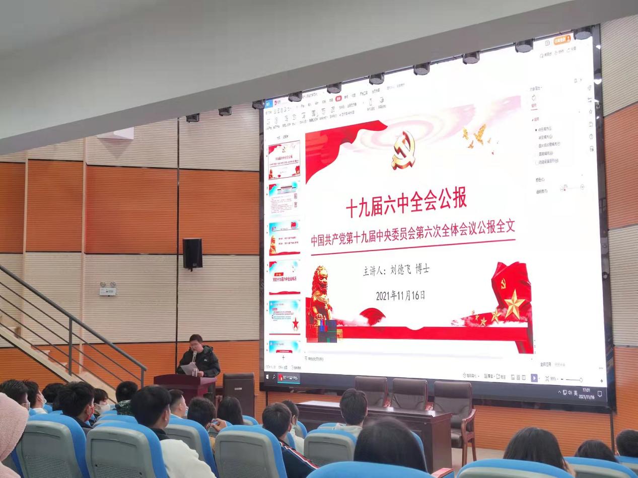 为贯彻落实《中共云南省委教育工委 云南省教育厅关于组织全省学校党组织书记校长同讲一堂思政课》通知要求,深刻学习领会党的十九届六中全会精神。2021年11月16日,云南商务职业学院副校长刘德飞博士在二号报告厅以“十九届六中全会公报”为题为思政教师及百余名优秀学生代表开讲。