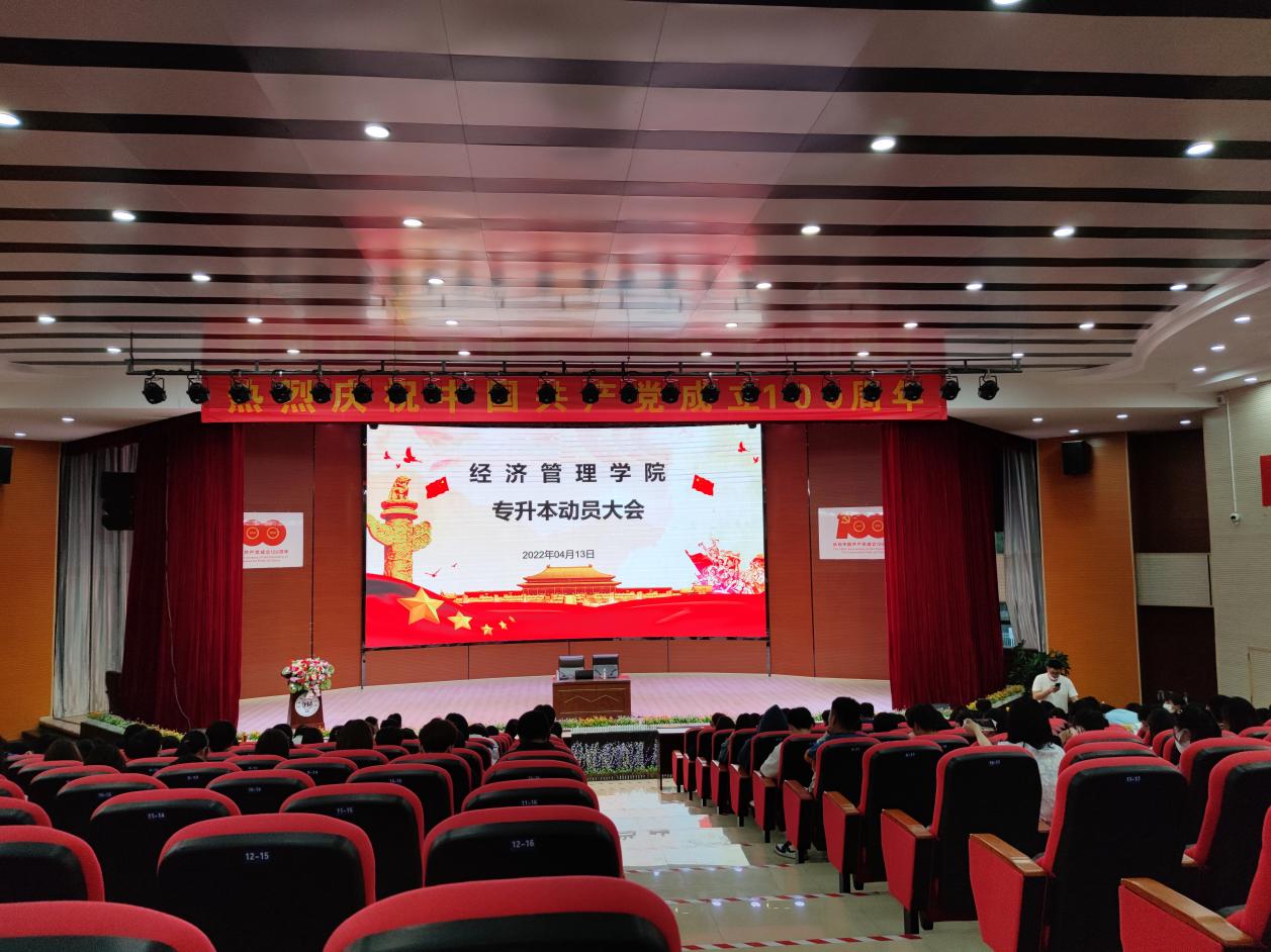 2022年4月13日,beat365平台官方网站经济管理学院2018级五年制、2020级高职三年制全体师生齐聚学生会堂,召开beat365平台官方网站2023级经济管理学院学生专升本动员大会。