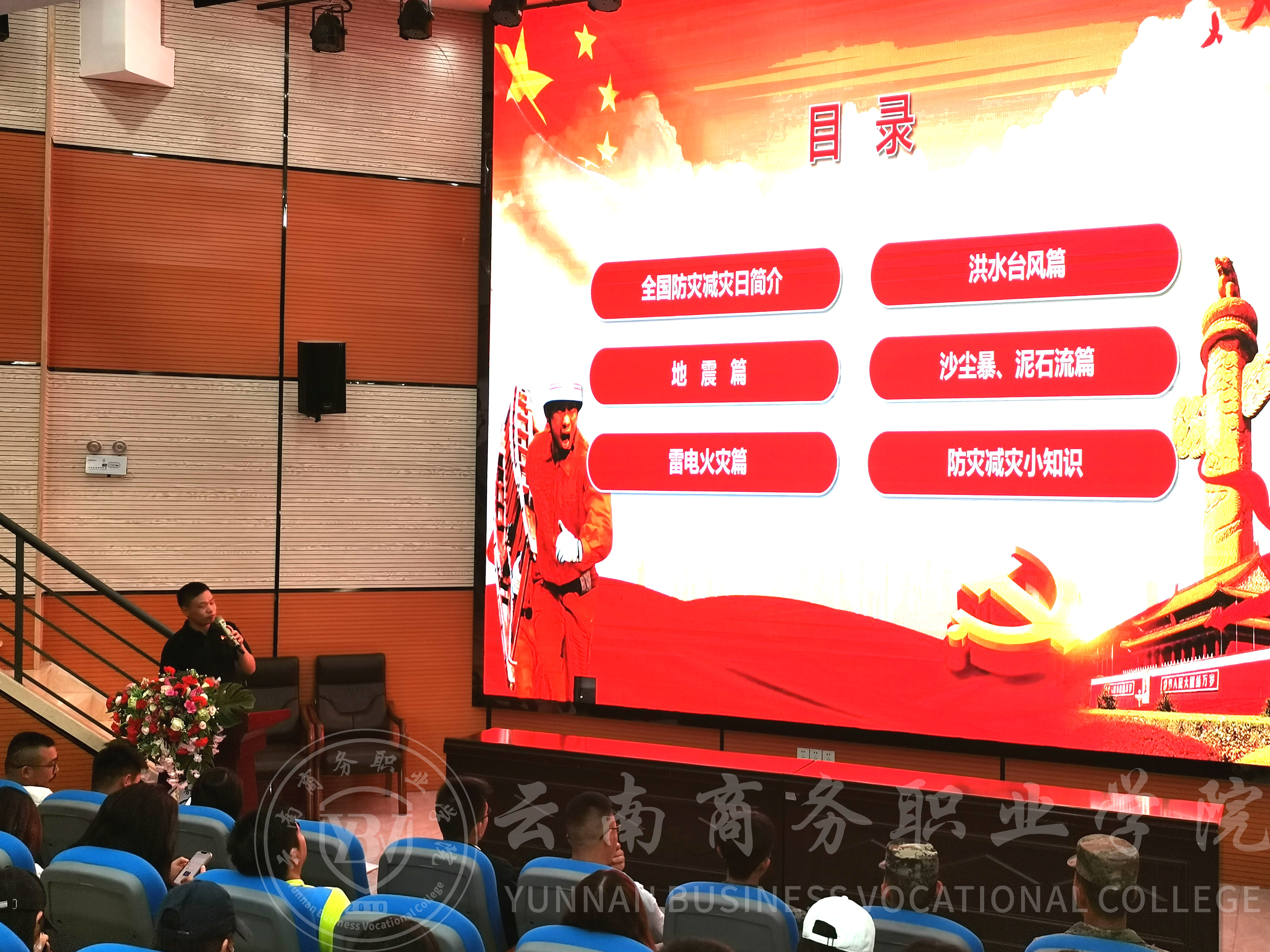 今年是我国第15个“防灾减灾日”。为普及灾害自救互救知识,引导广大师生关注、防范各类灾害风险,进一步增强师生灾害风险防范意识,提升防灾减灾能力和水平。5月9日下午,学校安全稳定处处长柯科在二号报告厅开展以“防范灾害风险 护航学校发展 确保师生安全”为主题的全国防灾减灾知识宣传讲座,各职能部门、教学单位,全体辅导员(班主任)及各班安全委员参加讲座。