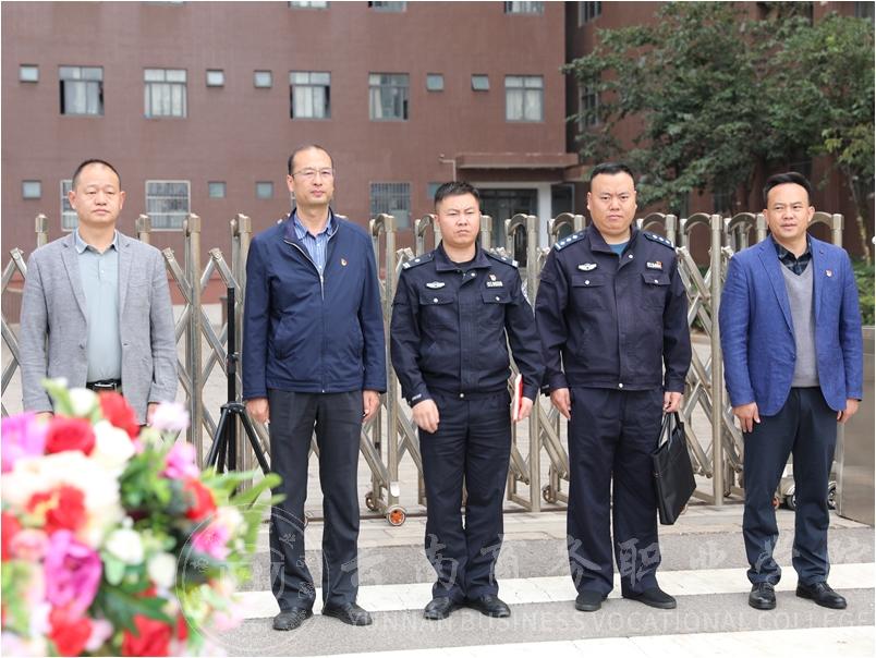 为大力提升全校师生的安全意识,进一步积极推进平安校园建设,有效深入推进校警地平安共建,10月31日上午,学校举行了“校园110”揭牌仪式暨法治副校长、法治辅导员聘书颁发仪式。嵩明县公安局龙保派出所副所长李晓明警官、社区民警杨志刚警官,学校党委书记张向英、副书记郭新阳、副校长武绍宏出席仪式,各职能部门负责人、二级学院师生400余人学生代表参加此次仪式。仪式由安全稳定处副处长李月明主持。