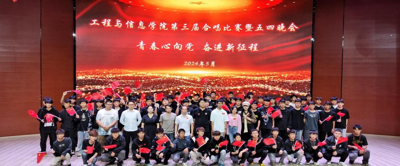 2024年5月28日,工程与信息学院党支部组织工信学院与应急学院全体师生在学生会堂举办‘青春心向党,奋进新征程’五四合唱大赛。本次大赛旨在通过唱响红歌,激扬青春,表达师生们对祖国的热爱和对党的忠诚,同时展现新时代青年的精神风貌和奋进姿态。