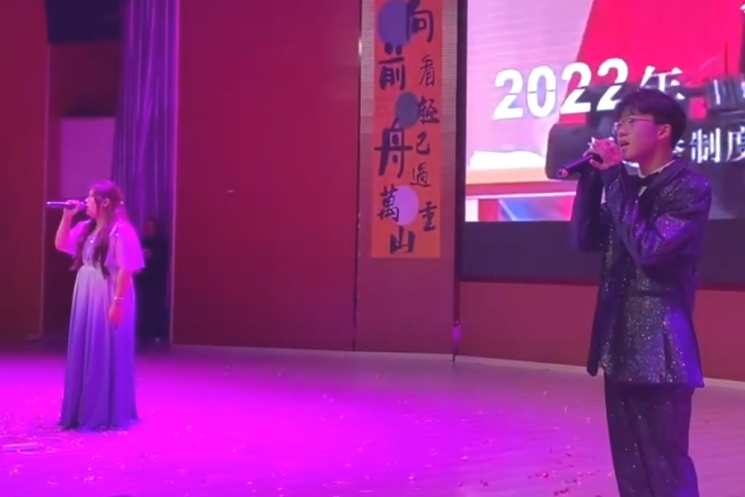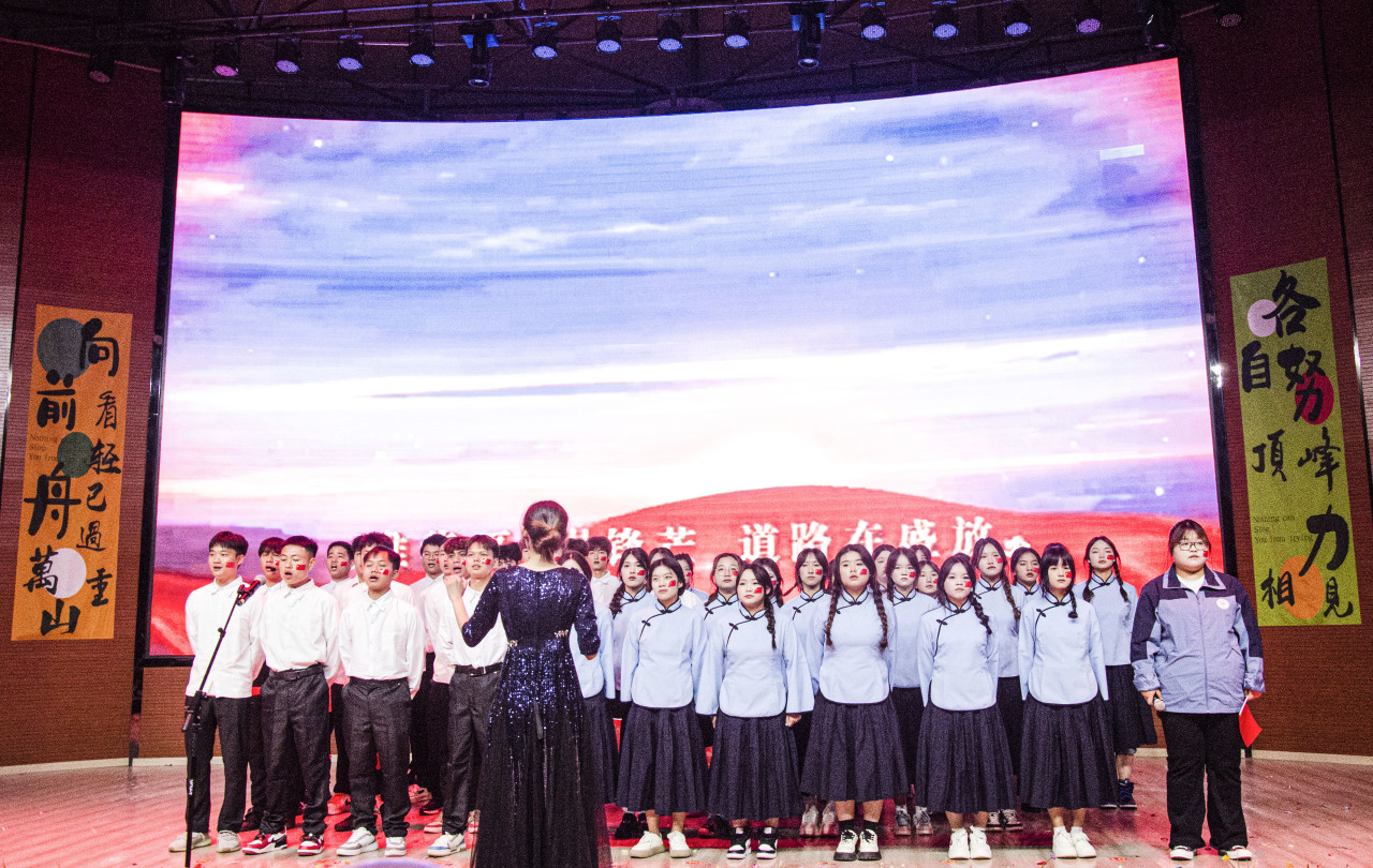 教师代表黄会端上台致辞。师者勉励学子勤学奋进,学子立志不负时光,期望与梦想是今晚的华章。