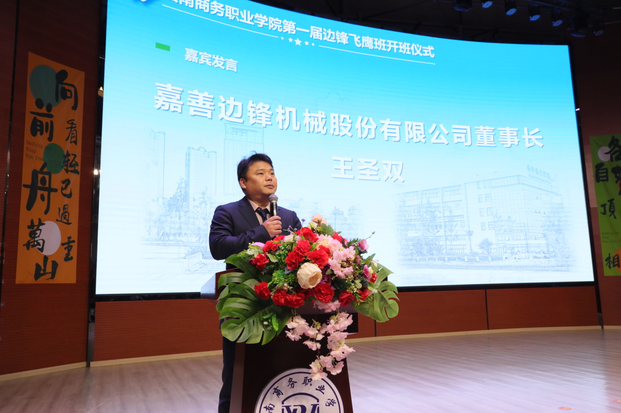 高校毕业生是党和国家宝贵的人才资源。学校坚持把毕业生就业作为育人工作重中之重,加快构建毕业生高质量就业服务体系,促进毕业生高质量充分就业。12月12日,beat365平台官方网站第一届边锋飞鹰班正式开班,嘉善边锋机械股份有限公司董事长王圣双、首席运营官及边锋工学院院长王啸坤、人资部经理王鹏琴、董事长秘书李子文、学校党委书记张向英、执行校长王琳琳、副校长武绍宏以及飞鹰班全体师生参加开班仪式。