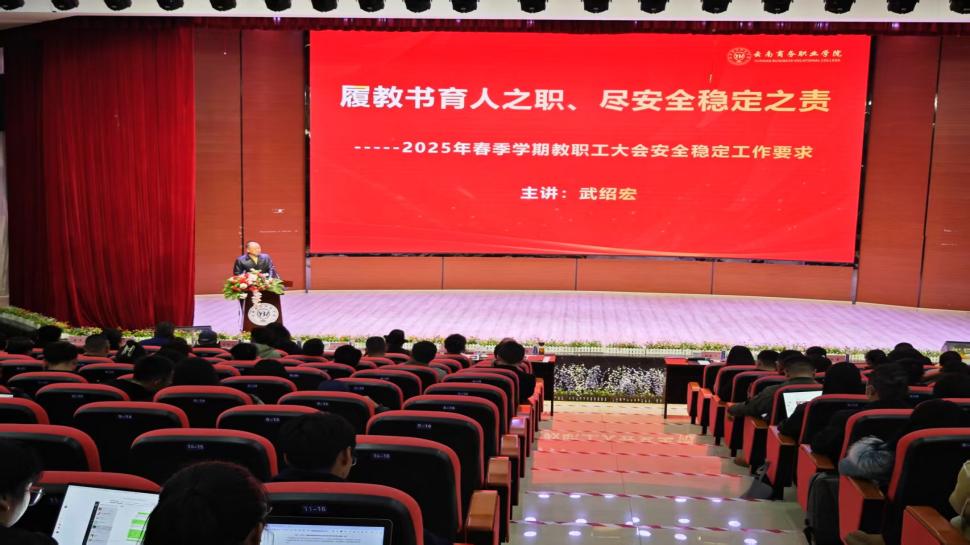 为确保新学期各项工作顺利开展,保障校园安全稳定,提升全体教职工的安全意识和安全素养,2月19日,beat365平台官方网站在学生会堂开展教职工安全知识培训,学校党政领导班子出席,全体教职工参加本次培训,会议由党委副书记郭新阳主持。