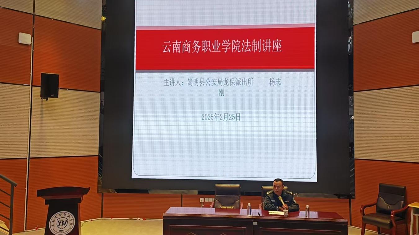 为加强学校安全宣传教育,增强师生法律底线意识,2025年2月25日下午特邀请法治务副校长杨志刚警官到校开展以法制安全为主题的讲座,各学院学生代表参加本次培训。
