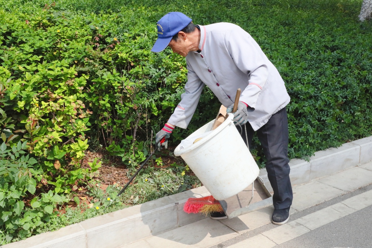清扫车穿梭在校园