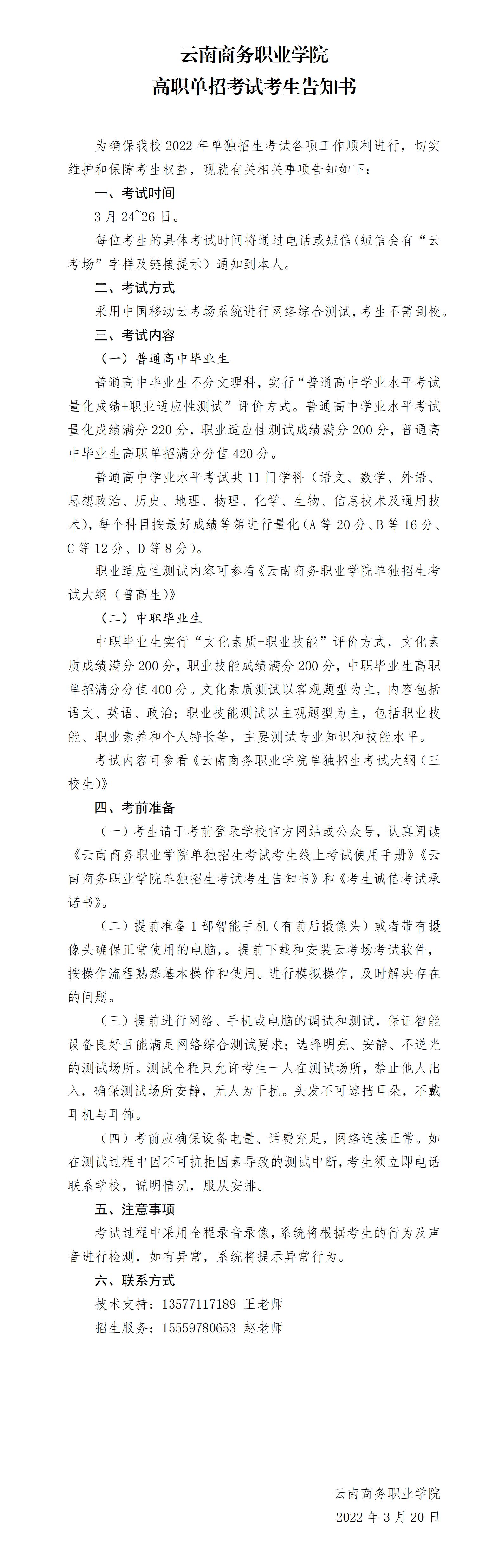 【单招考试方案】beat365平台官方网站2022年单独招生考试工作方案